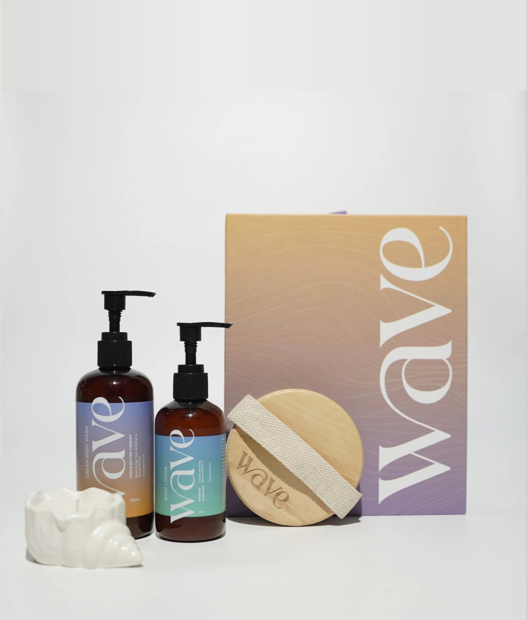 Give the gift of pause. Thoughtfully curated to turn a simple routine into a mindful ritual, this set brings together sensorial care and everyday calm. Inspired by Wave’s philosophy of finding your rhythm in daily chaos, it’s made for soft skin, slow moments, and thoughtful gifting.