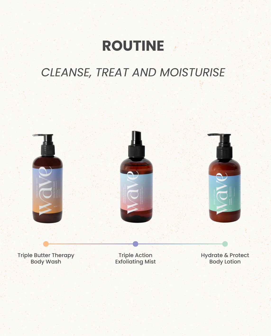 Triple Butter Therapy Cream Body Wash (300ml) – A rich, creamy cleanser with shea, cocoa, and mango butters that deeply nourishes dry skin.